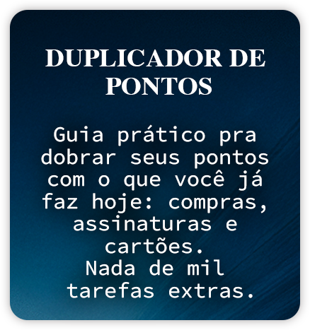 Juntos, formam o EFEITO MULTIPLICADOR OCULTO® — que pega o que você já gasta e transforma em até 5x mais valor, em viagens, upgrades e salas VIP.